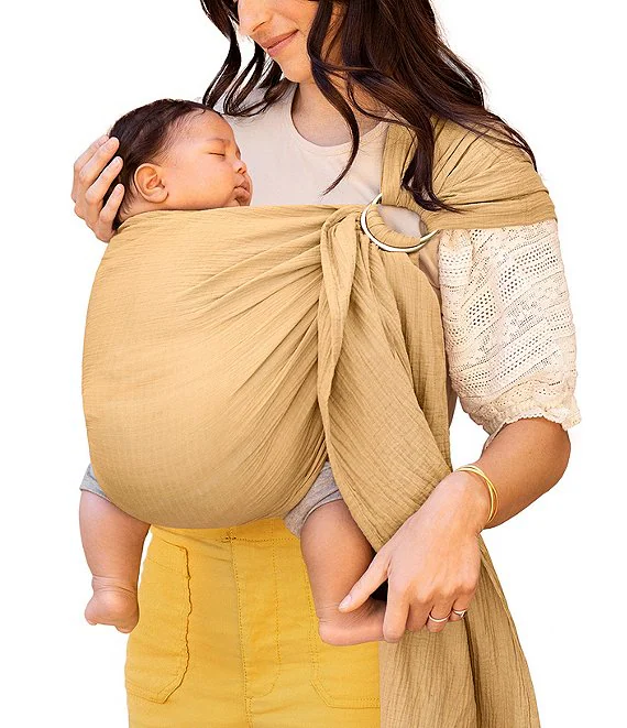 Elegant and effortless, the MOBY Ring Sling is now offered in a breezy, breathable double gauze cotton textile. Both lovely and lightweight, its intuitive design offers a fashionable, functional baby carrying option for all parents and caregivers. Crafted from a high-quality, woven cotton fabric, the sling provides an approachable, easy-to-wear alternative to the classic wrap design. It also offers both front and hip-carrying options, allowing the wearer to change positions and maintain comfort as baby grows. MOBY Ring Sling: the perfect combination of elegance, simplicity, support, and style. Adjusts to grow with baby, newborn to toddler.